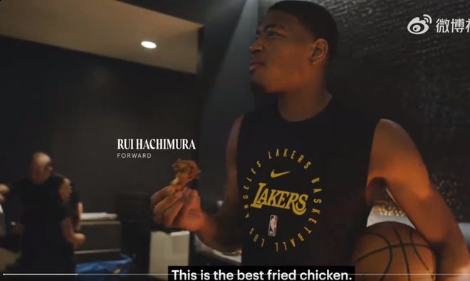 八村塁一边吃着鸡翅一边兴奋地喊道:“这是我吃过最好吃的炸鸡!”