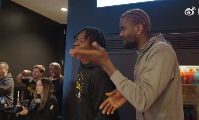 湖人新秀蒂耶罗再次出马为其高唱生日快乐歌,而艾顿也在一旁鼓励帝夜罗放声高唱,多名湖人球员以及教练组也参与其中。