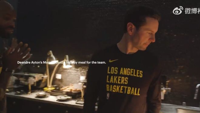 12月16日,湖人官方回顾了感恩节的温馨画面——艾顿的妈妈Andrea Ayton为湖人全队做了一顿丰盛的加勒比风味大餐。