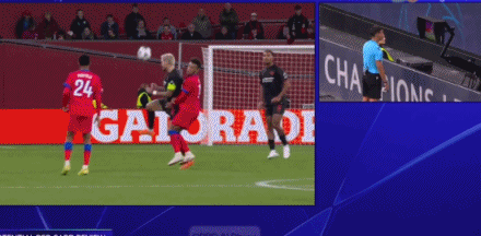 第33分钟,安德里希肘击杜埃,裁判观看VAR后改判红牌将其罚下