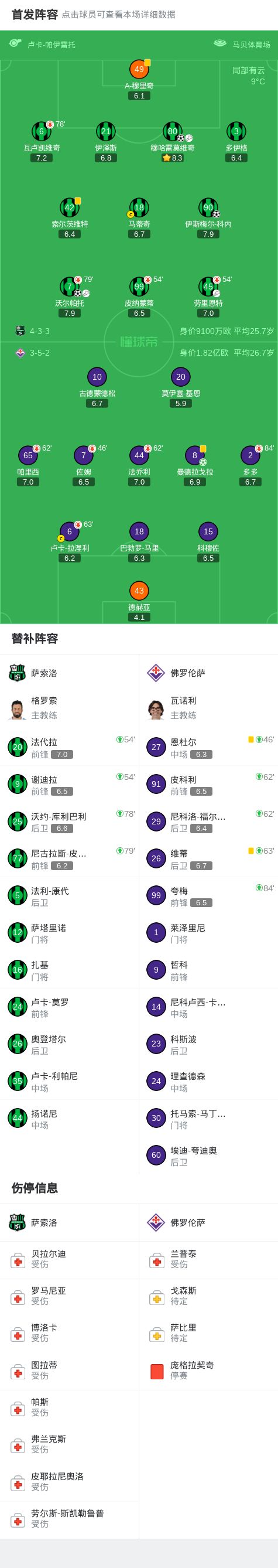 14轮不胜!佛罗伦萨客场1-3遭萨索洛逆转,沃尔帕托传射
